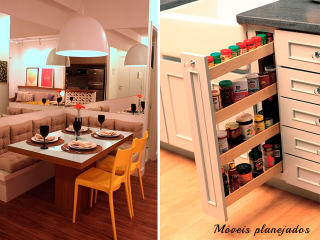 Uma dessas é o uso de móveis planejados, feitos sob medida conforme o espaço disponível para eles na sua residência /apartamento. Com eles é possível otimizar cada metro, centímetro e curva do seu apê, encaixando-os em pontos estratégicos. Também é possível usar móveis modulares, que são mais baratos que os planejados, porém possuem alto grau de personalização, já que são feitos em módulos que podem ser expandidos ou diminuídos.