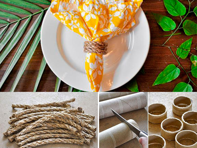 Os guardanapos podem ser de tecido ou papel. O mais comum é usar de papel. Se optar por estes, compre aqueles de folha dupla que são mais bonitos e macios. Se optar por guardanapo de tecido fica lindo e muito sofisticado. O legal é fazer aquele famoso “rolinho” com o guardanapo e usar um suporte para decorar, tem várias ideias de suporte de guardanapo que podem ser feitas em casa, até com rolo de papel toalha! O passo a passo deste suporte rústico da foto está aqui.