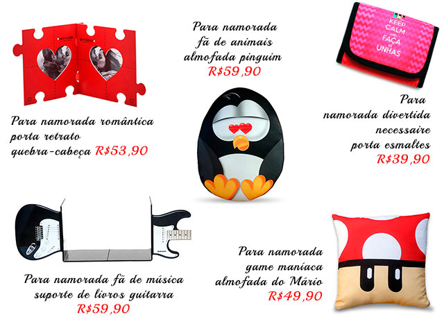 E claro, para fechar com chave de ouro a criatividade neste dia o presente precisa ser criativo e diferentão também! Na loja Gorila Clube, grande parceira aqui do blog, você encontra facilmente ótimas sugestões, divididas por categorias e estilo de namorado ou namorada. Assim fica bem mais fácil de encontrar o que combina com seu amor! Olha só algumas sugestões: