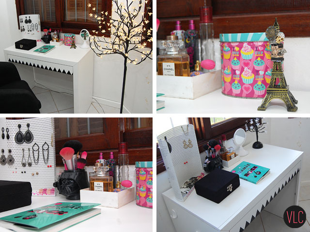 Não repare na parede, foca na penteadeira! Ainda vou pintar esta caixinha dos perfumes e talvez mudar algumas coisinhas nela…