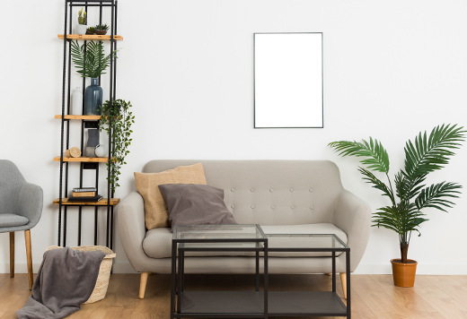 Sala: Você pode colocar um vaso com lírios ao lado do rack. Para deixar o ambiente mais confortável, pendure violetas ou suculentas em pequenos cachepôs na parede e faça uma composição com quadros.