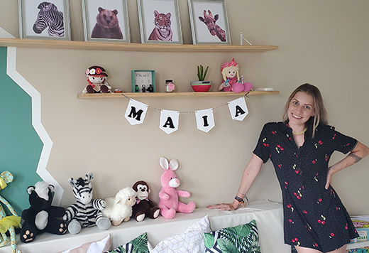 Eu havia colocado no quarto da Maia uma estante bem básica que iria utilizar para colocar livros, decorações e brinquedos. Porém, com o passar do tempo percebi que ela era muito leve e a Maia poderia se pendurar, acabei retirando do ambiente.